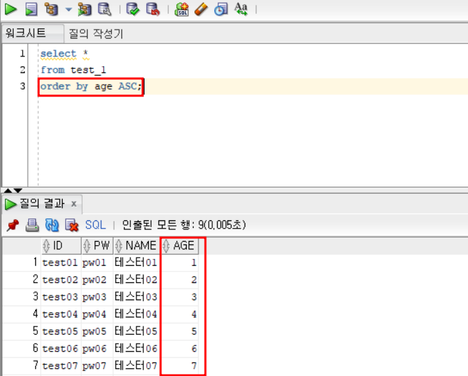 -- 콤마(,)로 여러 컬럼 기준잡고 정렬 가능