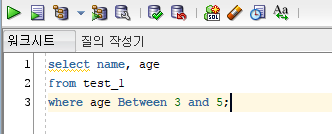 Oracle SQL Between로 범위연산(이상 ~ 이하) 하기 select문에서 조건을 이상 ~ 이하를 적용하고 싶을 때,Between이라는 범위 연산 명령어를 통해 한번에 처리할 수 있다. 범위 연산(이상 ~ 이하)을 처리하는 명령어 : Between A and B 예문)select name, age from test_1 where age Between 3 and 5; 💾 디스켓에 저장 2023.07.30