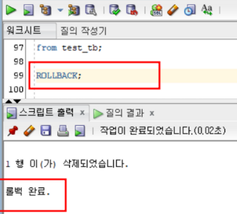 Oracle SQL 데이터 변경(입력,수정,삭제) 취소하기/ 영구 반영하기 * 데이터 변경(입력, 수정, 삭제)에 대한 처리를 취소하기 * - 복구하기라고 생각하면 된다.-> ROLLBACK; * 데이터 변경(입력, 수정, 삭제)에 대한 처리를 메모리에 영구 반영하기 * - 데이터 변경한 것을 메모리에 적용시킨다고 생각하면 된다.-> COMMIT; 💾 디스켓에 저장 2023.07.05