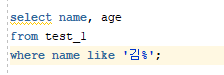Oracle SQL Like를 사용해서 특정 이름이나 제목 조회하기 LIKE 명령문을 사용하면이름이나 제목에 특정문자가 있을 시 조회되도록 할 수 있다 % : 모든 것을 의미함 _ : 자릿수 예문1)이름의 성씨가 '김'씨인 사람 찾기select name, age from test_1 where name like '김%'; 예문2)이름에서 세번째 단어가 '수'인 사람 찾기select name, agefrom test_1where name like '__수'; 💾 디스켓에 저장 2023.07.30
